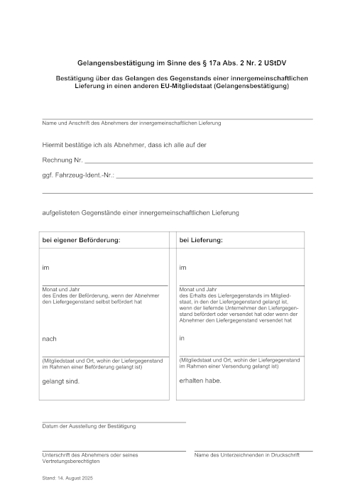 Gelangensbestätigung